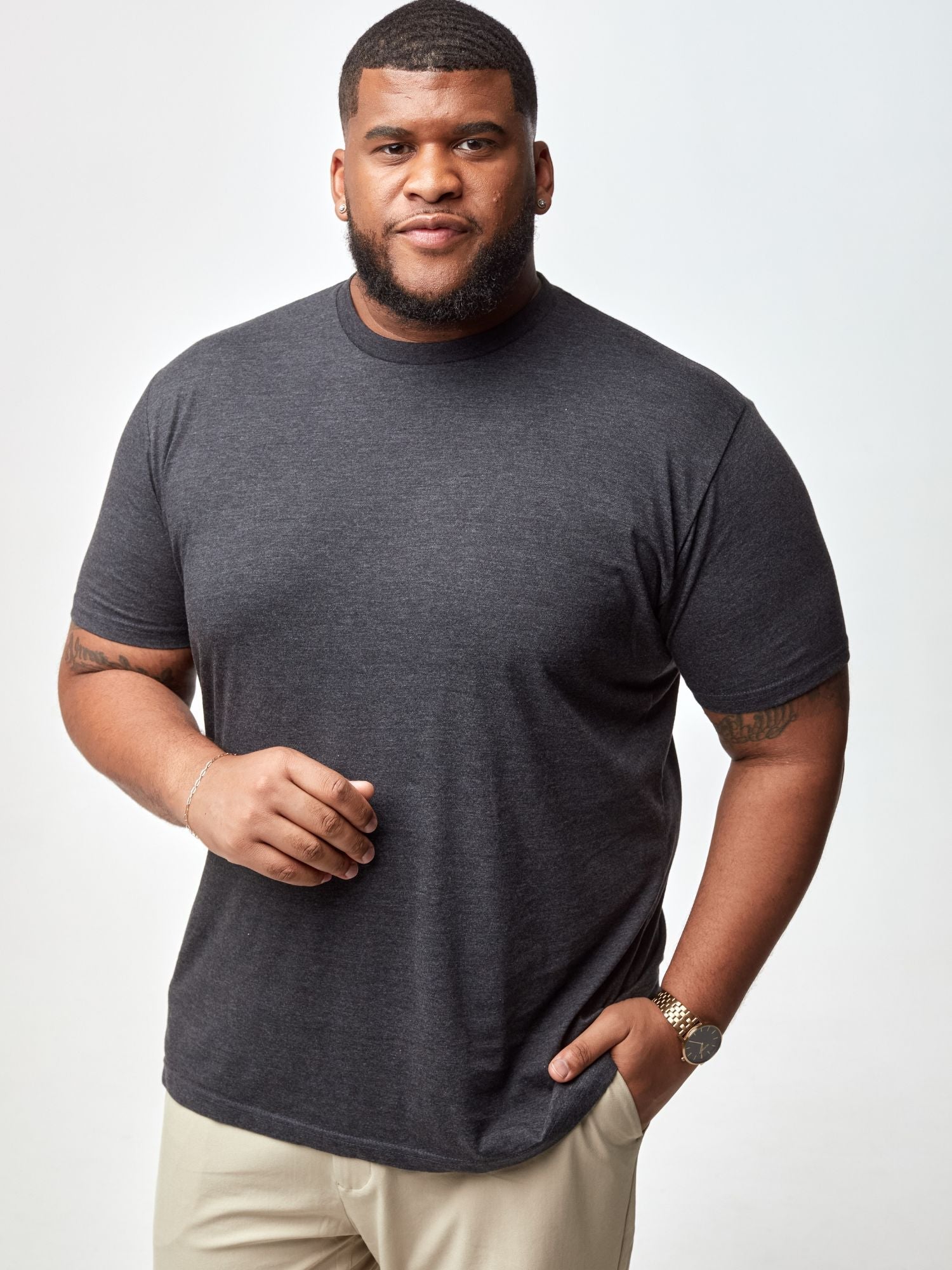 Our Charcoal Crew Neck tee should be at the ready in every guy's closet. since it's just so dang versatile. working with damn-near any outfit. You could rock this at a Hollywood Hills house party as easily as you could your grandmother's bridge tournament.